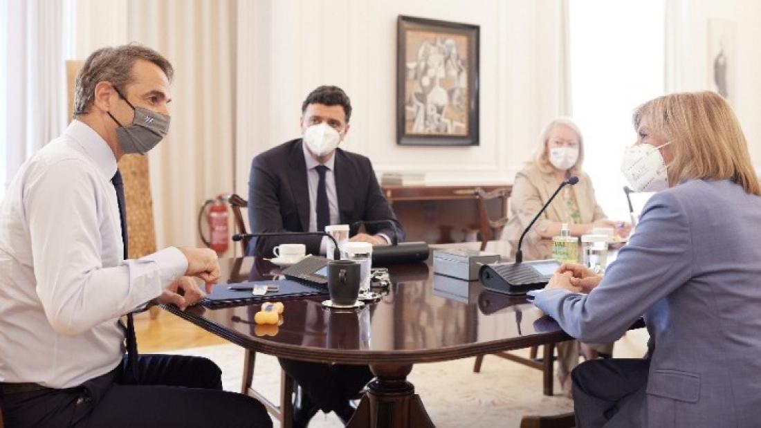 Ο πρωθυπουργός Κυριάκος Μητσοτάκης συναντήθηκε, στο Μέγαρο Μαξίμου, με την Ευρωπαία Επίτροπο για θέματα Υγείας και Ασφάλειας Τροφίμων, Στέλλα Κυριακίδου.