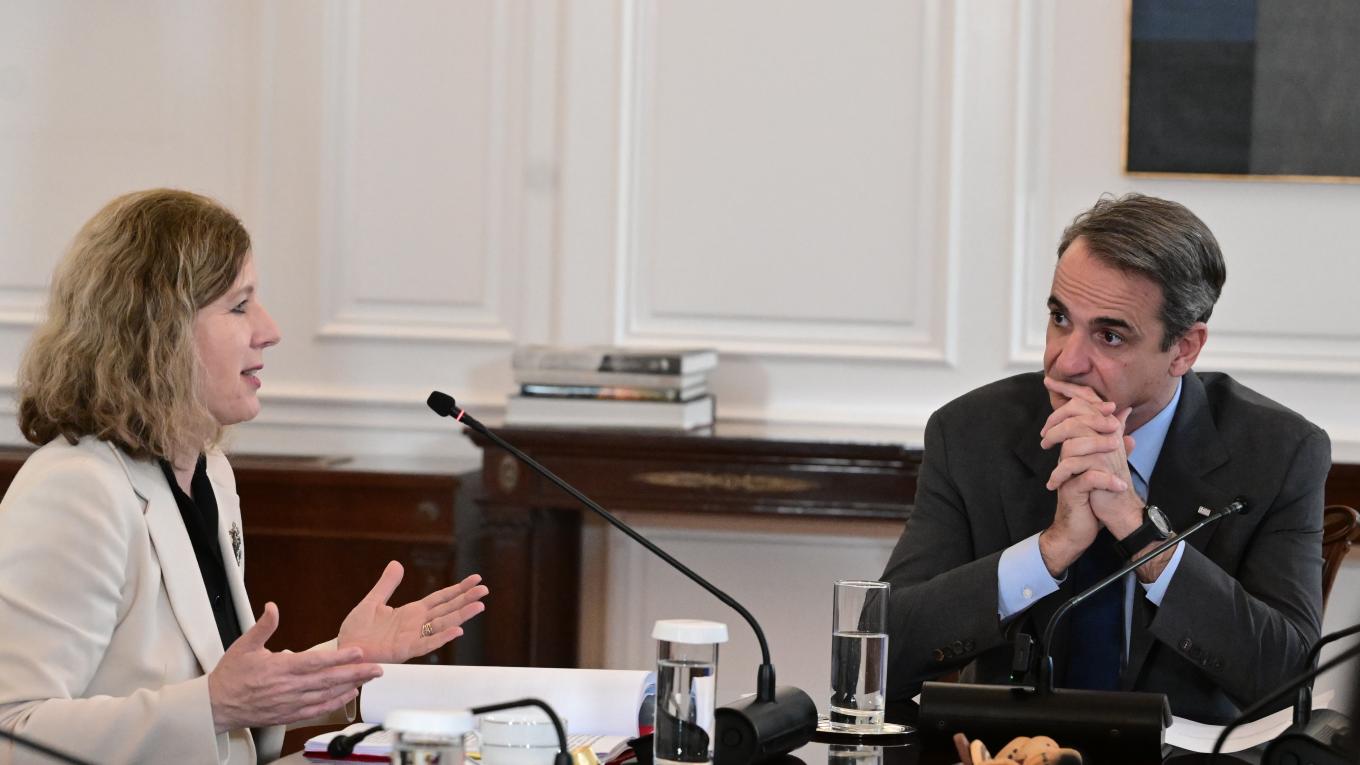 Ο πρωθυπουργός Κυριάκος Μητσοτάκης συναντήθηκε το πρωί στο Μέγαρο Μαξίμου με την αντιπρόεδρο της ευρωπαϊκής επιτροπής, αρμόδια για τις Αξίες και τη Διαφάνεια, Βιέρα Γιούροβα.