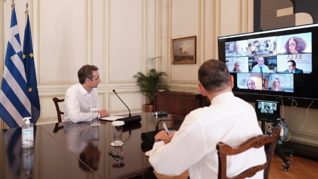 Τηλεδιάσκεψη υπό την προεδρία του πρωθυπουργού Κυριάκου Μητσοτάκη με κοινωνικούς εταίρους και στελέχη του υπουργείου Εργασίας & Κοινωνικών Υποθέσεων, με αντικείμενο την υγιεινή και την ασφάλεια στην εργασία, πραγματοποιήθηκε σήμερα.