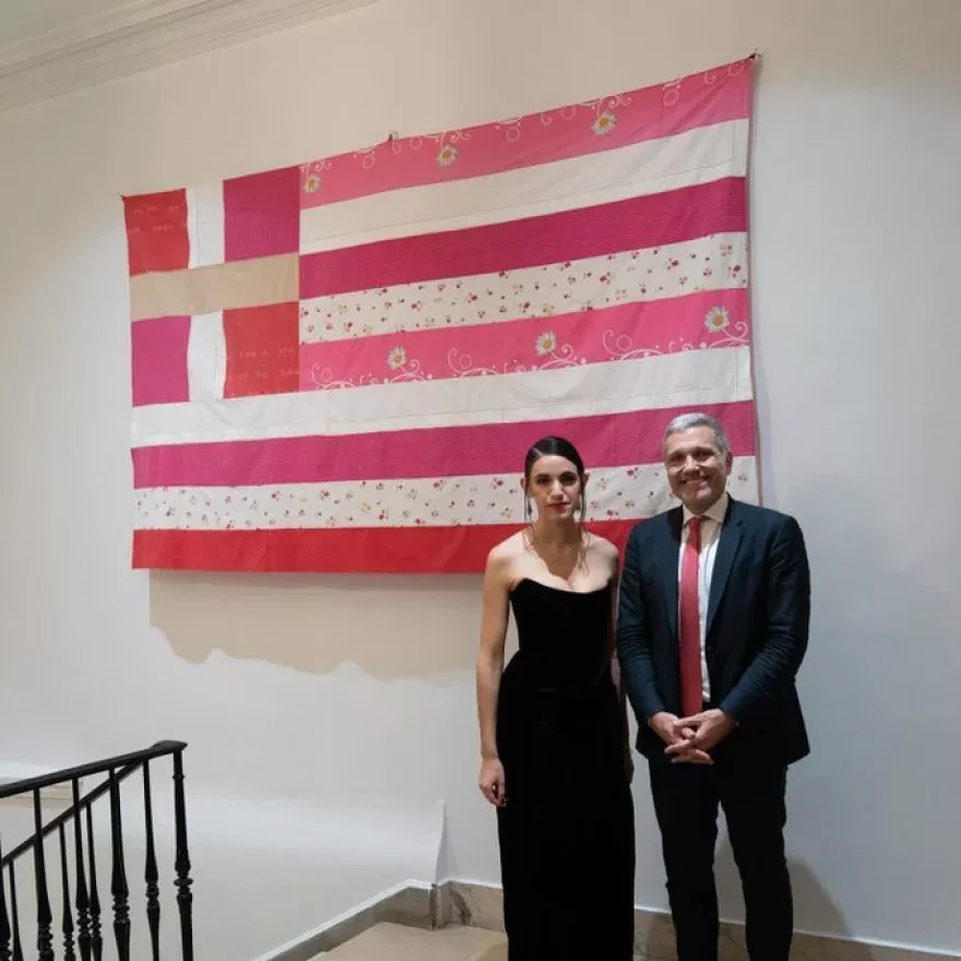 Μία... ροζ ελληνική σημαία από κουρελόπανα, που εκτίθεται σε έκθεση στο Γενικό Προξενείο της Ελλάδος στη Νέα Υόρκη, προκάλεσε αντιδράσεις με αποτέλεσμα το υπουργειο Εξωτερικών να αποσύρει το «έργο».