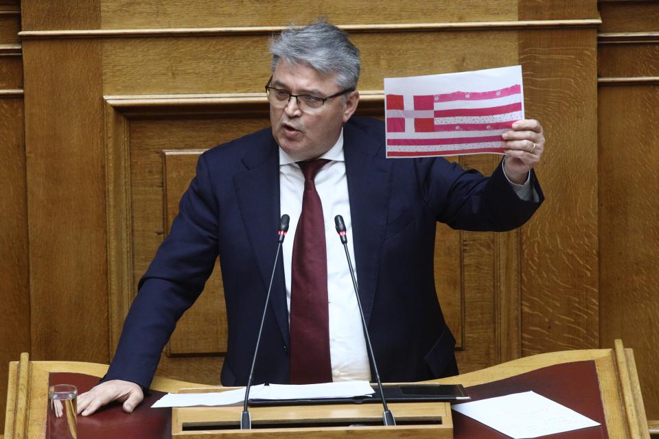 Το θέμα έφερε στο φως χθες ο επικεφαλής του κόμματος «Νίκη», Δημήτρης Νατσιός από το βήμα της Βουλής, κατά τη συζήτηση επί του προϋπολογισμού, όταν έδειξε φωτογραφία της επίμαχης ροζ ελληνικής σημαίας.