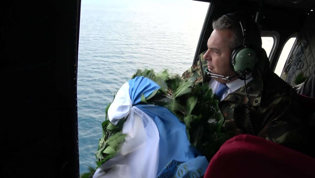 «Ο υπουργός Εθνικής 'Αμυνας πραγματοποίησε ρίψη στεφάνου στο θαλάσσιο χώρο των Ιμίων, στον τόπο θυσίας των τριών ηρώων Ελλήνων Αξιωματικών του Πολεμικού Ναυτικού Παναγιώτη Βλαχάκου, Χριστόδουλου Καραθανάση, Έκτορα Γιαλοψού». Αυτό ανακοινώθηκε από το υπουργείο Εθνικής Άμυνας.