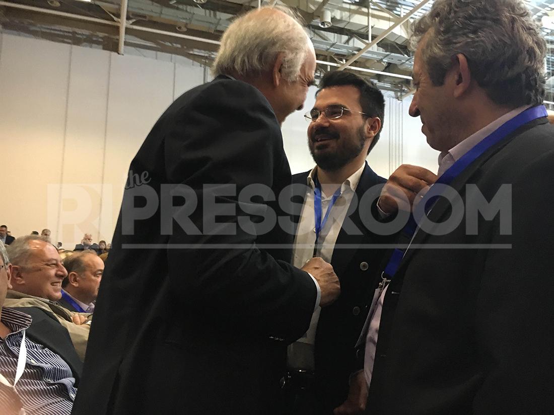 Ένα ιδιαίτερο στιγμιότυπο εξασφάλισε το thepressroom.gr από το 10ο συνέδριο της ΝΔ με πρωταγωνιστές τον Βαγγέλη Μειμαράκη και τον Ανδρέα Παπαμιμίκο.
