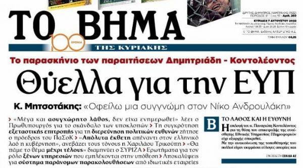 «Οφείλω μια συγγνώμη στον Νίκο Ανδρουλάκη» δηλώνει χαρακτηριστικά ο πρωθυπουργός στο Βήμα της Κυριακής, ενώ τονίζει πως «δεν είχα ενημερωθεί» σχετικά με την παρακολούθηση του τηλεφώνου του Προέδρου του ΠΑΣΟΚ-ΚΙΝΑΛ από την Εθνική Υπηρεσία Πληροφοριών.