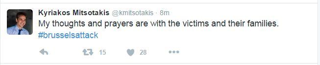 Τη θλίψη και τη συμπαράστασή του στους συγγενείς των θυμάτων εξέφρασε ο πρόεδρος της ΝΔ, Κυριάκος Μητσοτάκης, μέσω Twitter: Οι σκέψεις μου και οι προσευχές μου είναι στα θύματα και στις οικογένειες τους», έγραψε στα Αγγλικά ο κ. Μητσοτάκης.