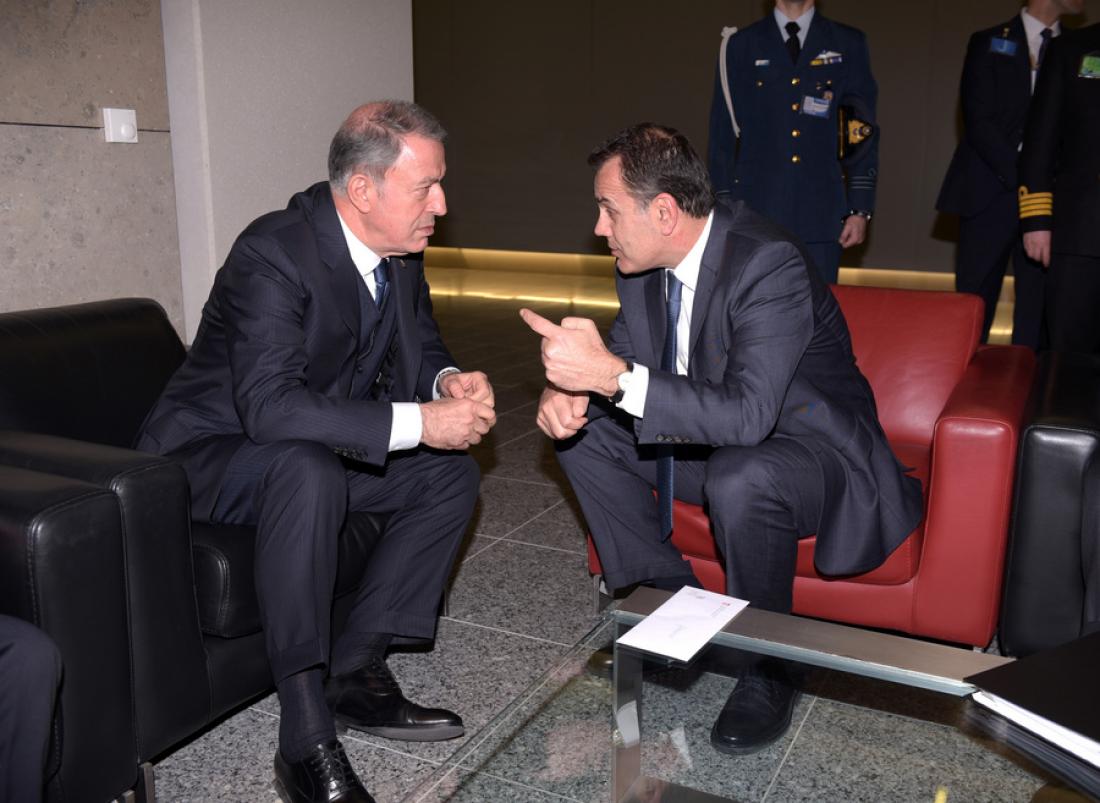 Συνάντηση διάρκειας μόλις 15 λεπτών είχαν οι Νίκος Παναγιωτόπουλος και Χουλουσί Ακάρ στο περιθώριο της συνόδου του ΝΑΤΟ στις Βρυξέλλες.