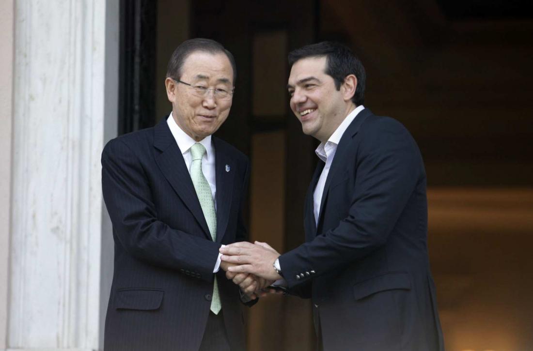 Είναι τιμή μου που βρίσκομαι για δεύτερη φορά σε αυτήν την χώρα. Είμαι εδώ για να εκφράσω την ευγνωμοσύνη μου για την προσπάθεια της Ελλάδας, για την προσπάθεια του ελληνικού λαού για την γενναιοδωρία του και για το ότι κατόρθωσε να σταθεί αρωγός σε πολλούς ανθρώπους στους οποίους έδωσε την υποστήριξή του, ανέφερε ο γενικός γραμματέας του ΟΗΕ, Μπαν Κι Μουν, στον πρωθυπουργό Αλέξη Τσίπρα.