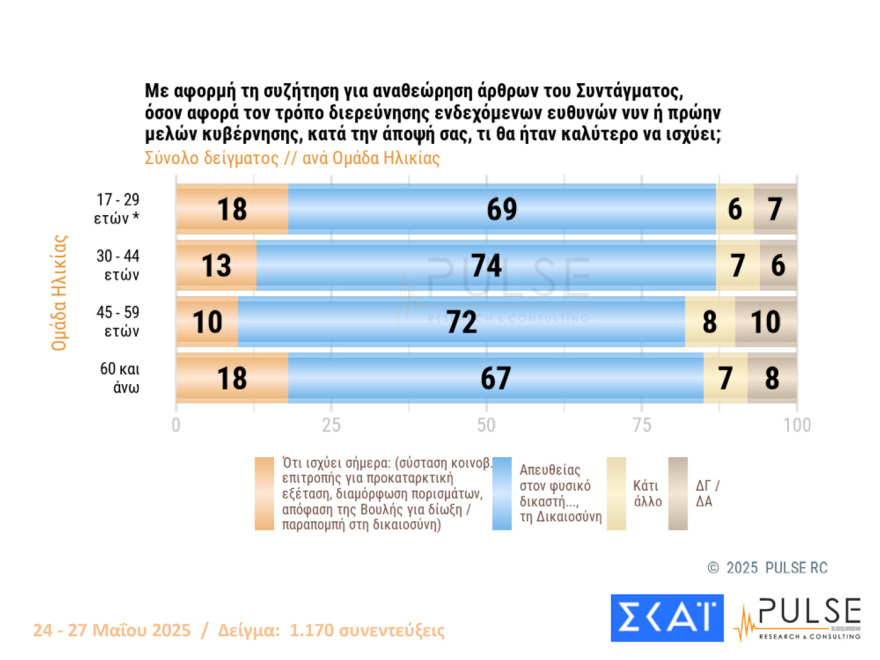 - 25-34 ετών: Πλεύση 19,3%, ΝΔ 11,8%, ΠΑΣΟΚ 10,6%, Ελληνική Λύση 9,2%