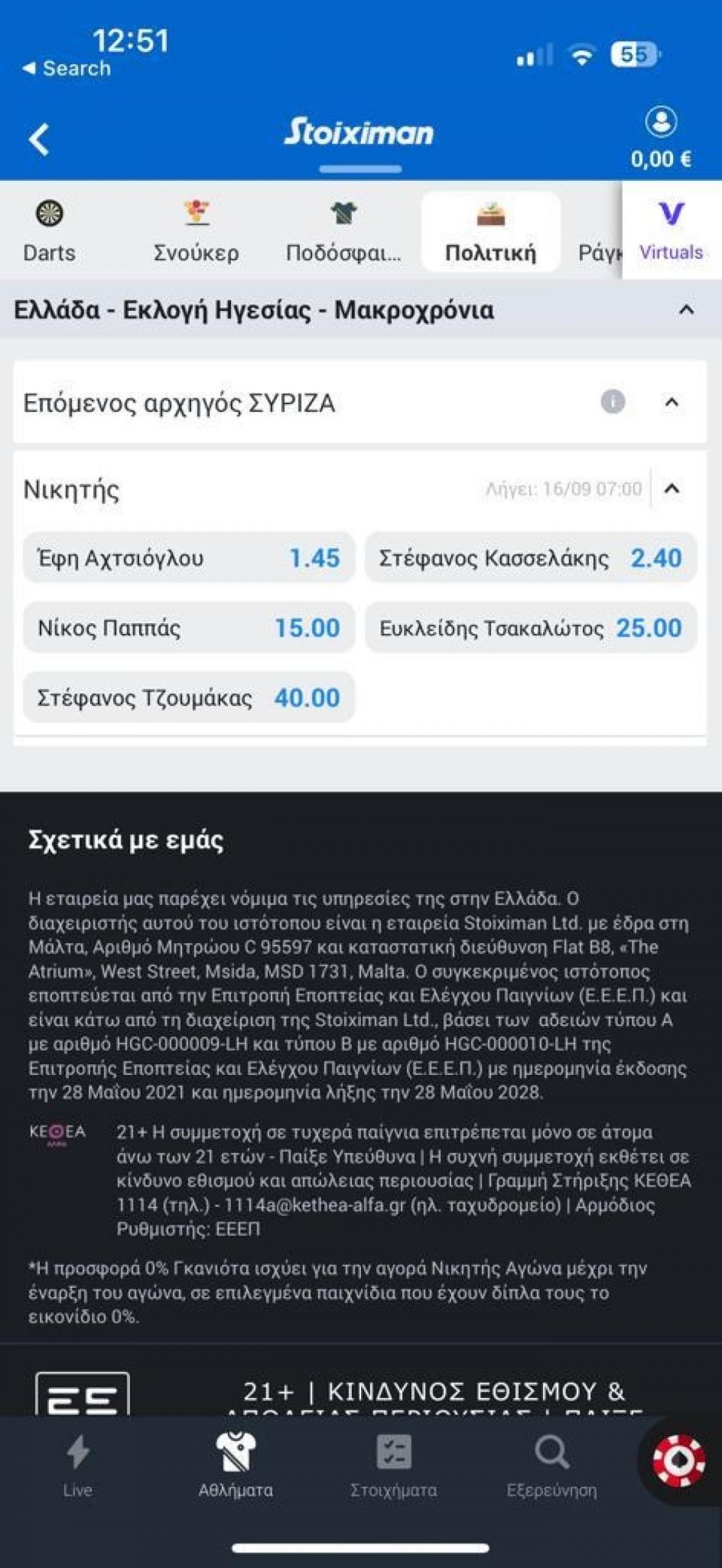 Ντέρμπι ανάμεσα σε Αχτσιόγλου - Κασσελάκη δίνουν οι στοιχηματικές εταιρείες