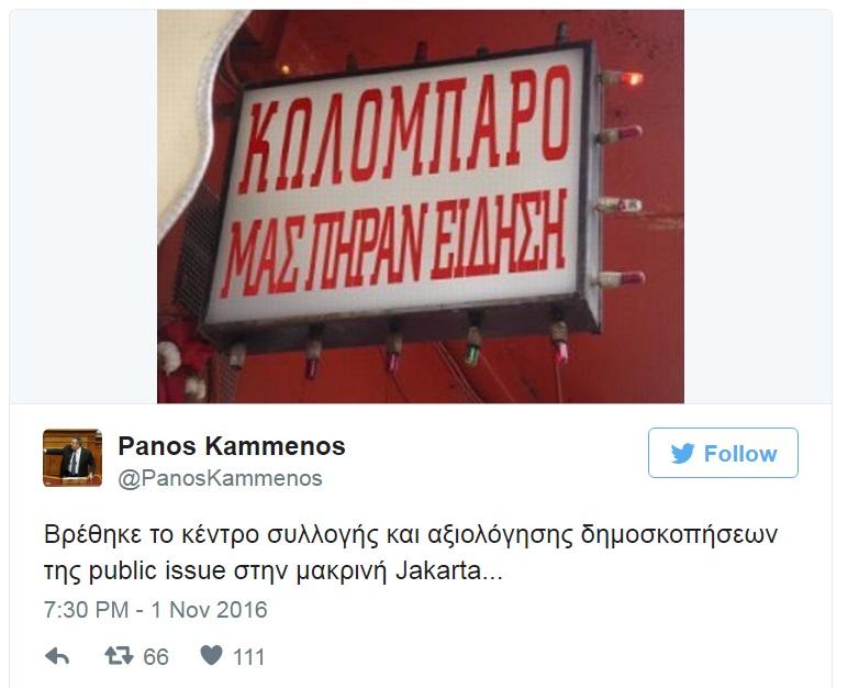 Με tweet του ο κ. Καμμένος, προφανώς εξοργισμένος, έδωσε τη δική του απάντηση στη μεγάλη διαφορά ανάμεσα στον ΣΥΡΙΖΑ και τη Νέα Δημοκρατία αλλά και το 2% που αφήνει τους ΑΝΕΛ εκτός βουλής.