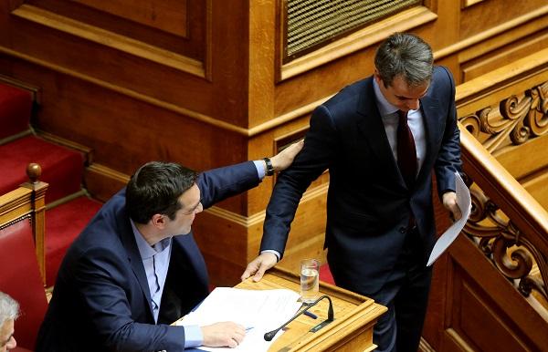 Ο φωτογραφικός φακός "συνέλαβε" ένα ιδιαίτερα φιλικό ενσταντανέ ανάμεσα στους Αλέξη Τσίπρα και Κυριάκο Μητσοτάκη. Οι δύο πολιτικοί είχαν μία σύντομη συνομιλία στη Βουλή.