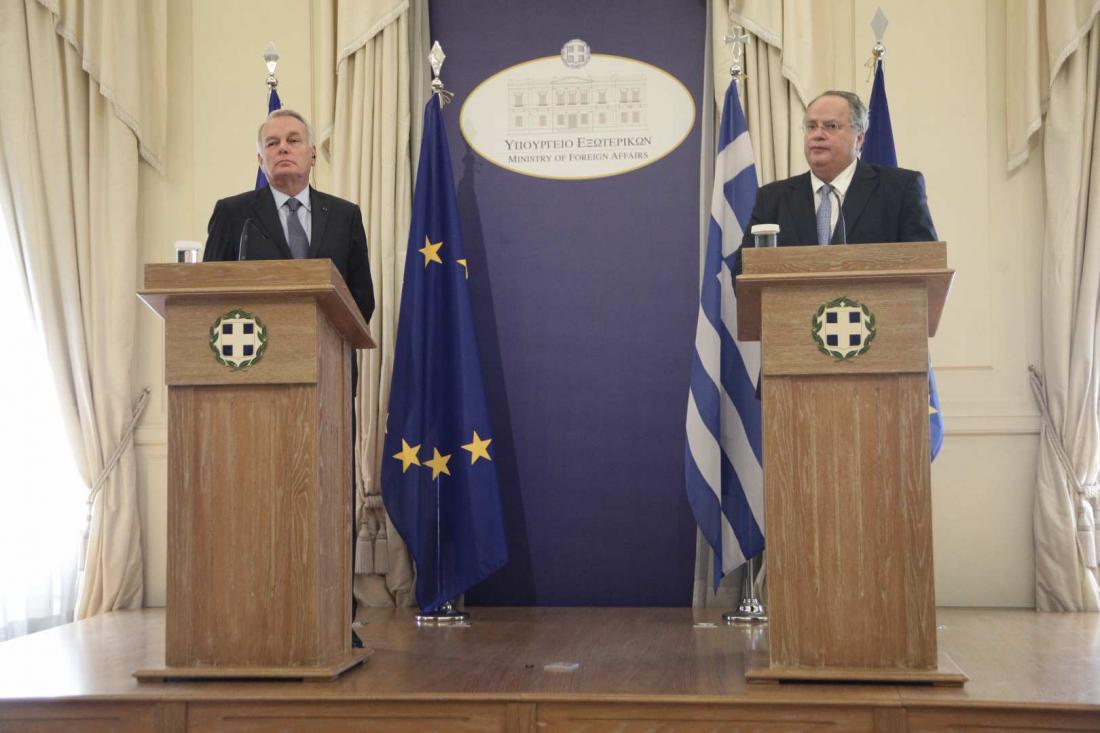 Τη στήριξη της Γαλλίας προς την Ελλάδα στην ΕΕ για ταχεία επίλυση του ελληνικού χρέους εξέφρασε από την Αθήνα ο Γάλλος υπουργός Εξωτερικών Ζαν Μάρκ Ερό μετά τη συνάντηση που είχε με τον υπουργό Εξωτερικών Νίκο Κοτζιά. Την ανάγκη στο ζήτημα του χρέους «όλες οι πλευρές να κρατάνε τις δεσμεύσεις τους» τόνισε ο κ. Κοτζιάς από την πλευρά του στο πλαίσιο της κοινής συνέντευξης Τύπου.