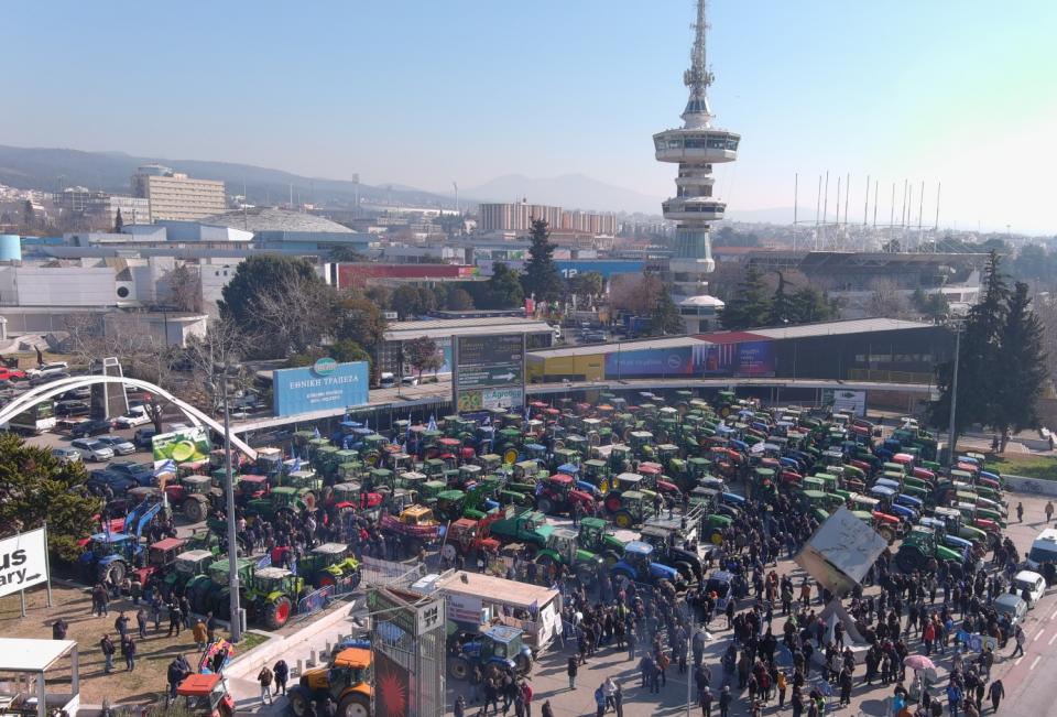 Εκατοντάδες τρακτέρ, εν τω μεταξύ, είναι παρατεταγμένα έξω από τη Διεθνή Έκθεση Θεσσαλονίκης, όπου διοργανώνεται η 30ή Διεθνής Έκθεση «Αgrotica».