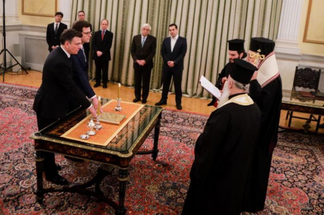 Ο λόγος για τον υφυπουργό Υποδομών Θάνο Μωραΐτη, και τον υφυπουργό Μεταναστευτικής Πολιτικής Άγγελο Τόλκα, που ορκίστηκαν πρώτοι και στη συνέχεια δέχτηκαν τα συγχαρητήρια του Αλέξη Τσίπρα, που σχολίασε δεικτικά «σε αυτό το σχήμα έβαλα και θρησκευόμενους ανθρώπους»
