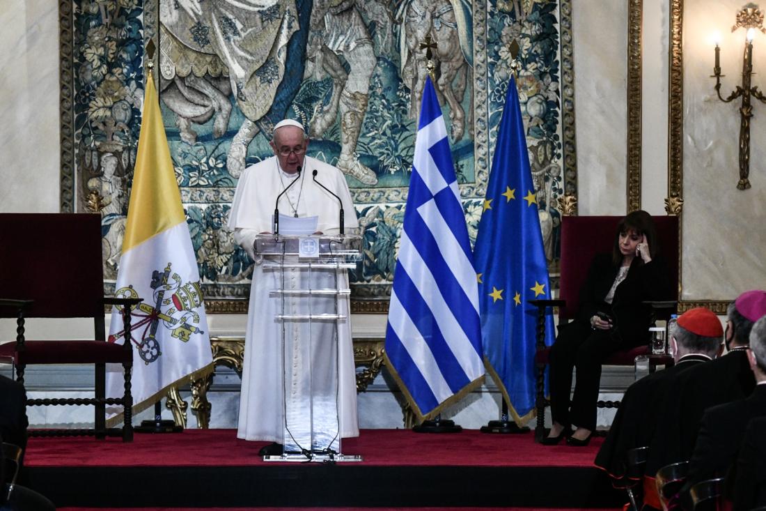 «Χωρίς την Αθήνα και χωρίς την Ελλάδα, η Ευρώπη και ο κόσμος δεν θα ήταν αυτό που είναι σήμερα» είπε ο Πάπας Φραγκίσκος κατά την ομιλία του στο Προεδρικό Μέγαρο, όπου τον υποδέχθηκε Πρόεδρος της Δημοκρατίας, Κατερίνα Σακελλαροπούλου.