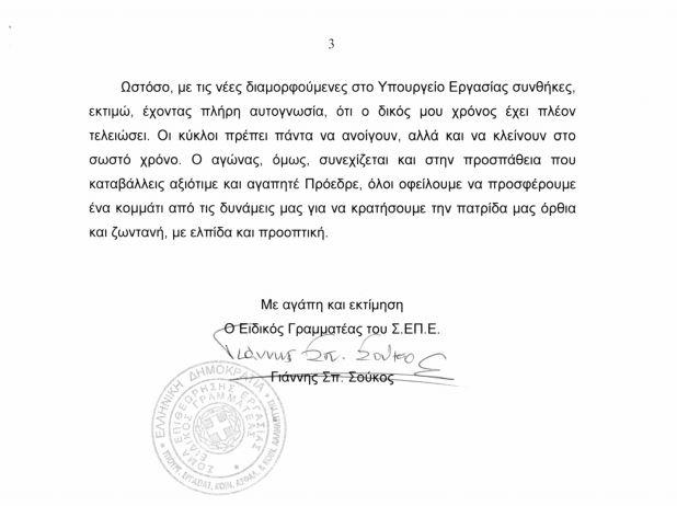 Ακολουθεί ολόκληρη η επιστολή παραίτησης του κ. Σούκου: