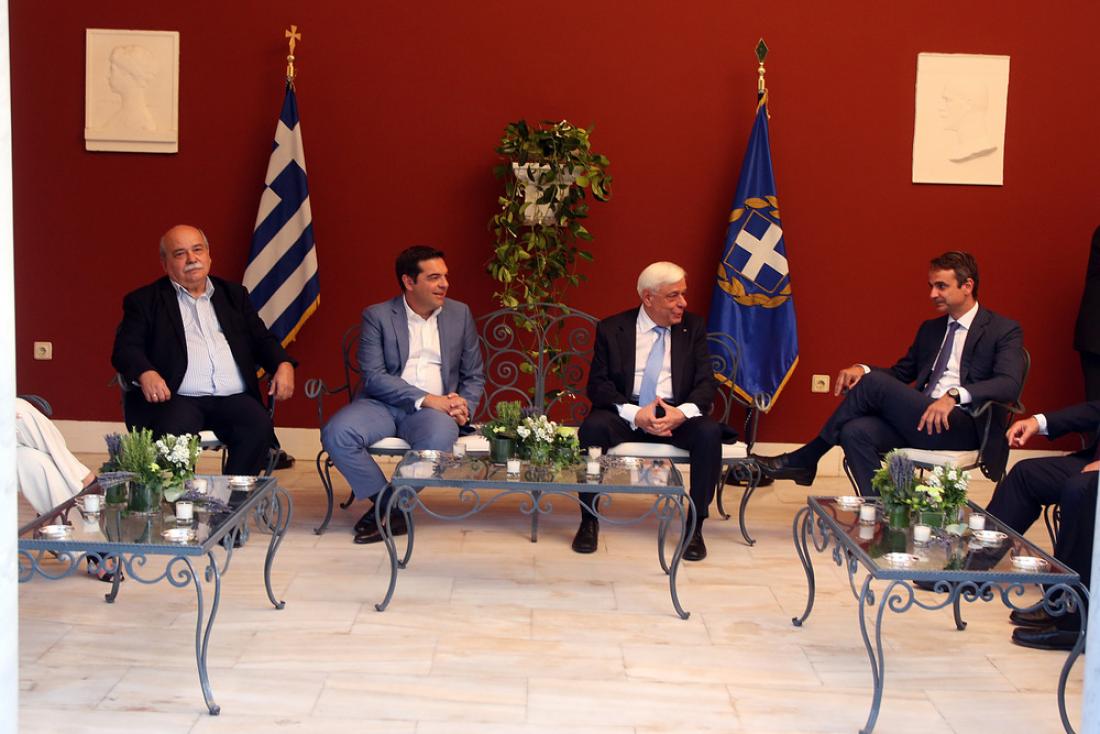 Στο Προεδρικό Μέγαρο έφτασαν λίγο πριν από τις 8 το βράδυ οι πολιτικοί αρχηγοί για τον εορτασμό της 42ης επετείου της αποκατάστασης της Δημοκρατίας.
