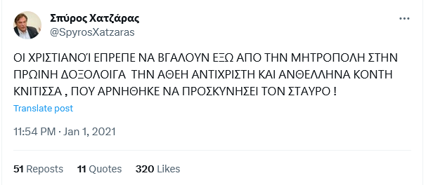 Ο Σπύρος Χατζάρας έχει πολλές φορές στο παρελθόν εκφραστεί με ρατσιστικές, μισαλλόδοξες ακόμα και ναζιστικες θεωρίες.