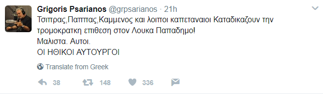 Ενώ στο κείμενο της Αυγής γίνεται λόγος και για το μήνυμα στο twitter του Γρηγόρη Ψαριανού: