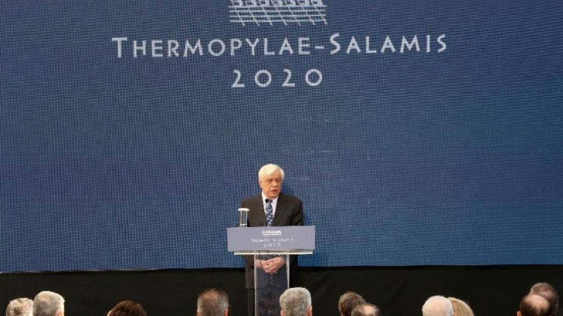«Η Ελλάδα, πιστή στις ιστορικές της παρακαταθήκες, παραμένει - και μάλιστα υπό την συγκυρία της «φλεγόμενης» από τις πολεμικές συγκρούσεις ευρύτερης περιοχής μας - ένα είδος «ακραίου ορίου» της Δύσης προς την Ανατολή, εκπροσωπώντας, μέσω του Ελεύθερου Πνεύματος και του Πολιτισμού της, την γνήσια και ανιδιοτελή υπεράσπιση της Ειρήνης, της Ελευθερίας και της Δημοκρατίας» υπογράμμισε ο Πρόεδρος της Δημοκρατίας κ. Προκόπης Παυλόπουλος κηρύσσοντας την έναρξη των επετειακών εκδηλώσεων για τα 2.500 χρόνια από την Μάχη των Θερμοπυλών και την Ναυμαχία της Σαλαμίνας.
