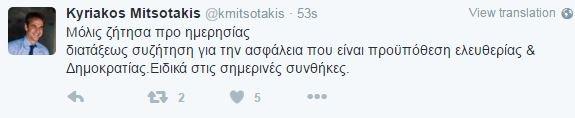 "Καθίσταται αναπόδραστη ανάγκη η εξέταση της ασφάλειας στις νέες συνθήκες που βιώνει η χώρα" καθώς όπως εκτιμά ο κ.Μητσοτάκης στην επιστολή του: "Μετά τις τρομοκρατικές επιθέσεις στις Βρυξέλλες βάσιμα μπορεί να υποστηριχθεί ότι οι συμφωνίες της ΕΕ για το προσφυγικό και οι ρυθμίσεις για τη μετεγκατάσταση των προσφύγων θα αντιμετωπίσουν πρόσθετα προβλήματα στην εφαρμογή τους. Αυτό θα σημαίνει επιπλέον βάρη και πρόσθετα προβλήματα σε μία σχεδόν εκτός ελέγχου κατάσταση στο προσφυγικό- μεταναστευτικό ζήτημα".