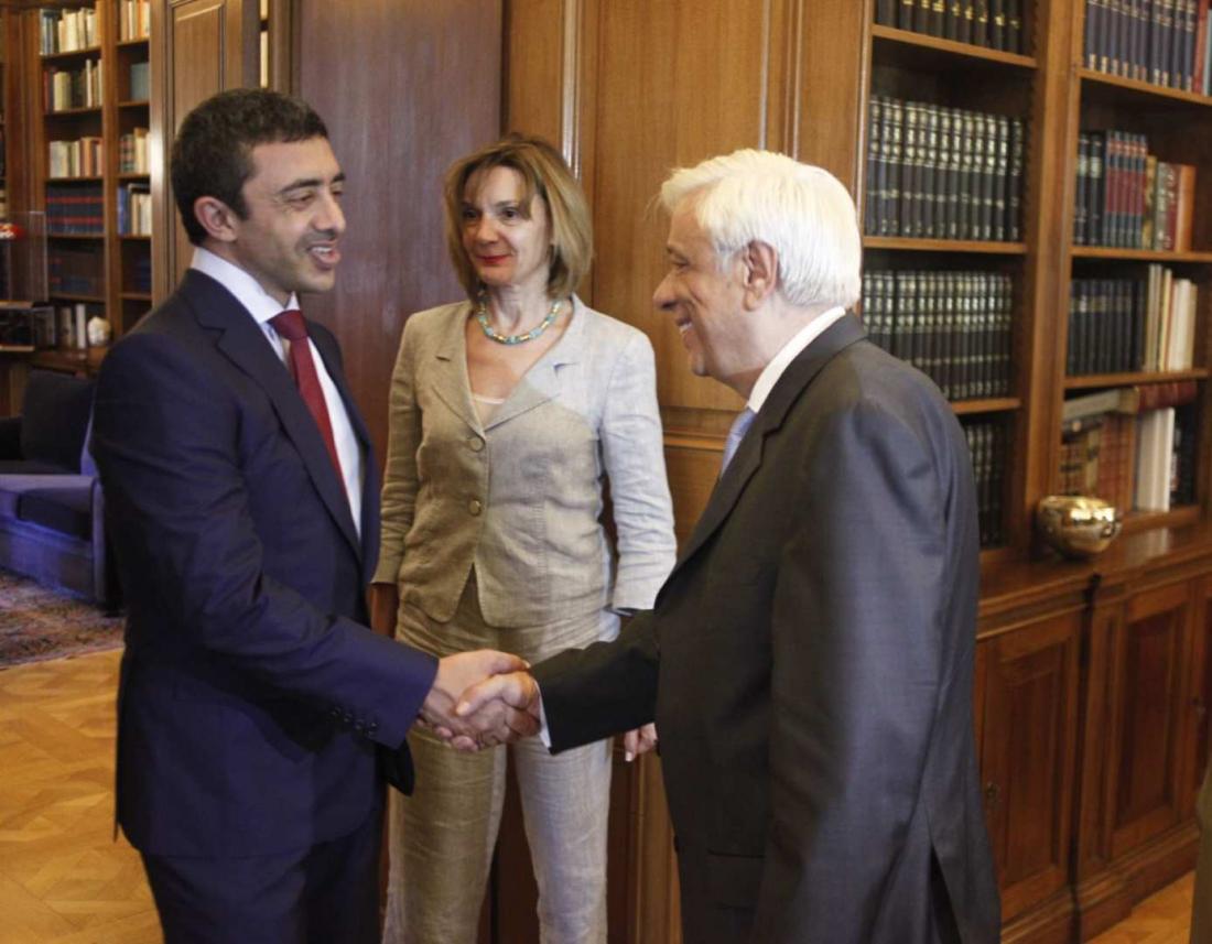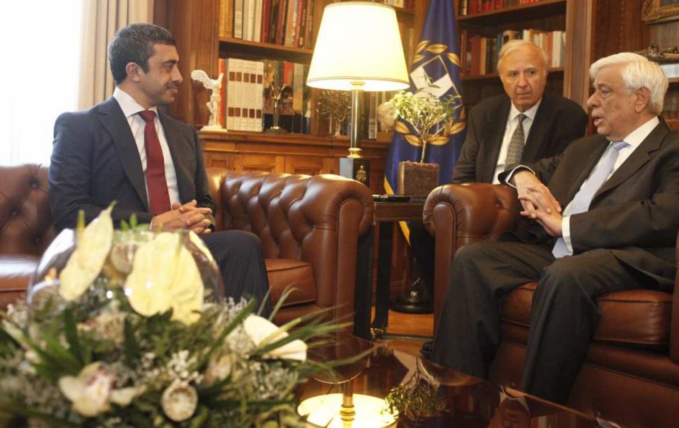 Πρόσκληση προς τα Ηνωμένα Αραβικά Εμιράτα για επενδύσεις στην Ελλάδα απηύθυνε ο Πρόεδρος της Δημοκρατίας, Προκόπης Παυλόπουλος, κατά τη διάρκεια της συνάντησής του, το μεσημέρι, με τον υπουργό Εξωτερικών και Διεθνούς Συνεργασίας Ηνωμένων Αραβικών Εμιράτων, σεϊχη Α. Bin Zayed Al Nahyan, στο Προεδρικό Μέγαρο.