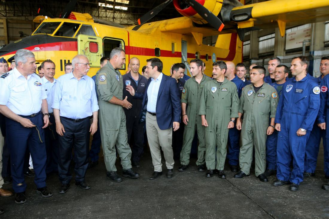 Επίσης, εξέφρασε την εμπιστοσύνη, τη στήριξη και τον θαυμασμό του ελληνικού λαού στις δυνάμεις ενάεριας πυρόσβεσης, που με κίνδυνο της ζωής τους αντιμετωπίζουν εδώ και χρόνια τη λαίλαπα των πυρκαγιών. «Η ετοιμότητά σας στην κατάσβεση των πυρκαγιών είναι το κρίσιμο σημείο στον ακήρυχτο πόλεμο με τα στοιχεία της φύσης», σημείωσε ο κ. Τσίπρας.