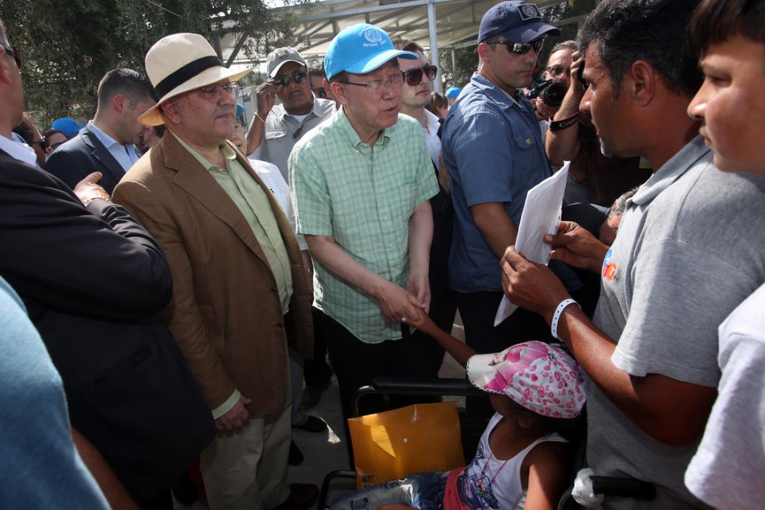 Στη Λέσβο έφτασε ο ΓΓ του ΟΗΕ, Μπαν Γκι-Μουν, ο οποίος είχε νωρίτερα συναντηθεί στην Αθήνα με τον Ελληνα πρωθυπουργό Αλέξη Τσίπρα.