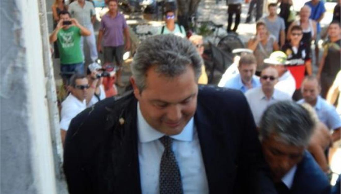 VIDEO Κατά τη διάρκεια της επίσκεψης στο νησί του κ.Καμμένου για το μεταναστευτικό είχε προκληθεί ένταση, όταν πολίτες του είχαν πετάξει αυγά και μπουκάλια με νερό.
