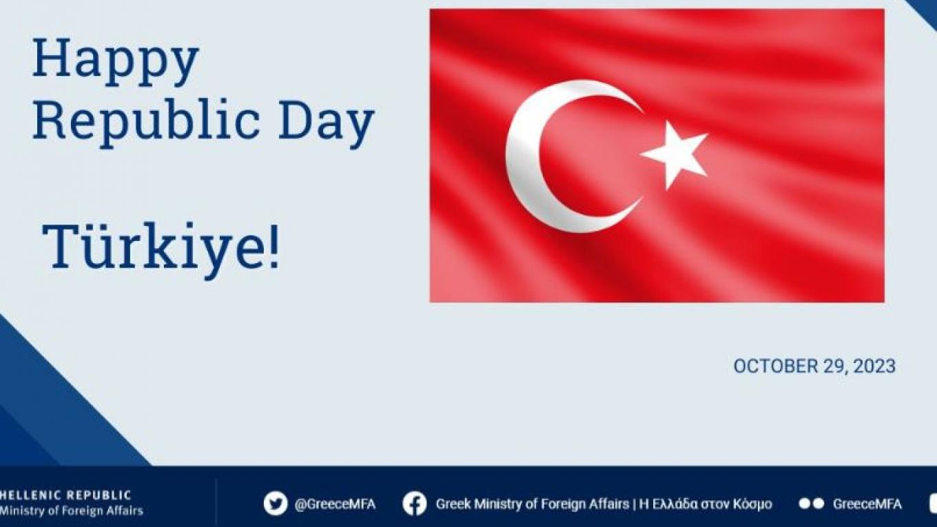 «Εκφράζουμε τα συγχαρητήριά μας στο λαό και την κυβέρνηση της Τουρκίας με την ευκαιρία της εορτής της Ημέρας Δημοκρατίας τους», αναφέρει το υπουργείο Εξωτερικών σε ανάρτησή του στο twitter.