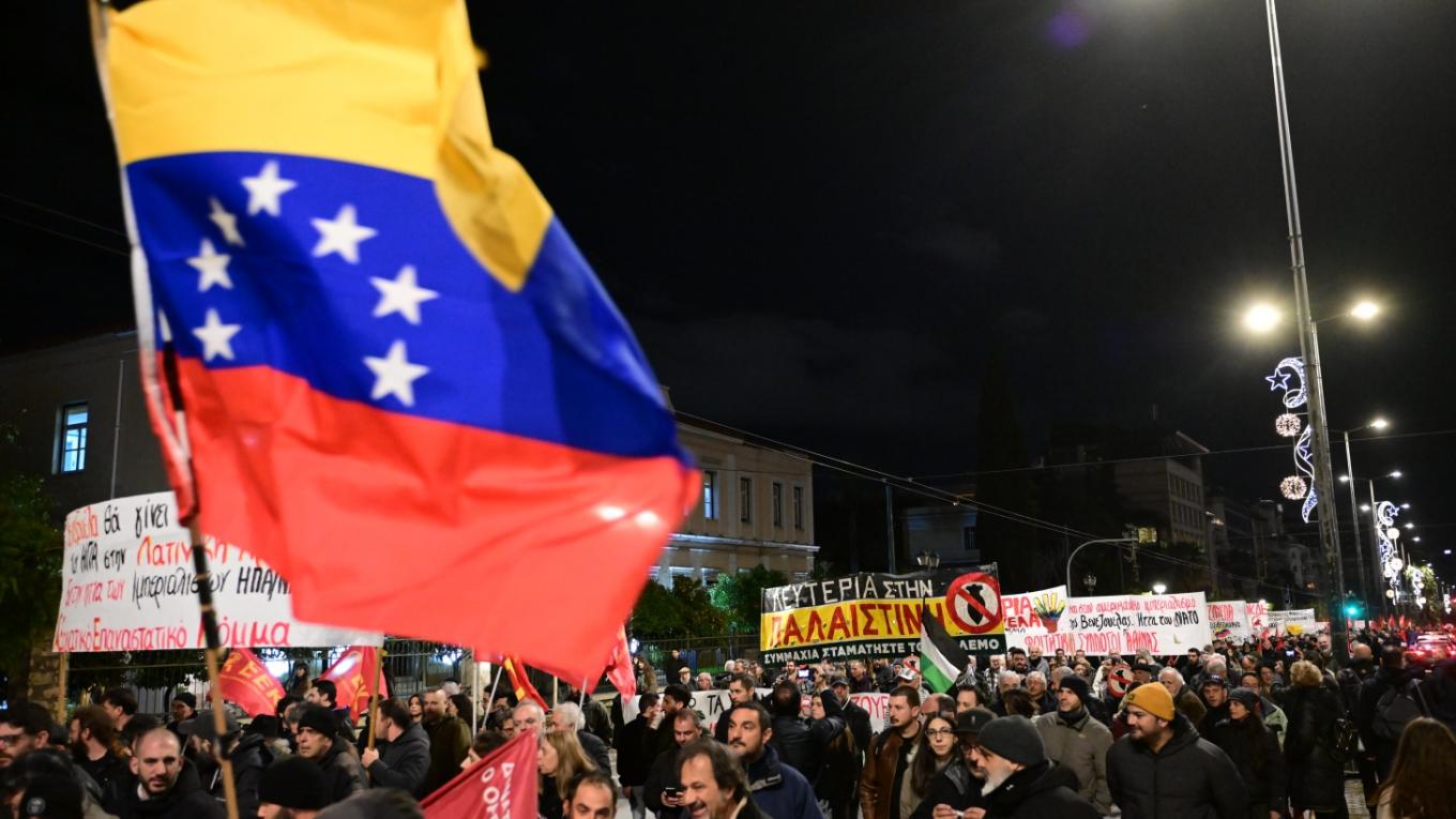 Συγκέντρωση διαμαρτυρίας και πορεία προς την πρεσβεία των Ηνωμένες Πολιτείες πραγματοποιήθηκε το απόγευμα του Σαββάτου (3/1) στην Αθήνα, στον απόηχο των ραγδαίων εξελίξεων στη Βενεζουέλα και της αμερικανικής στρατιωτικής επιχείρησης στο Καράκας.