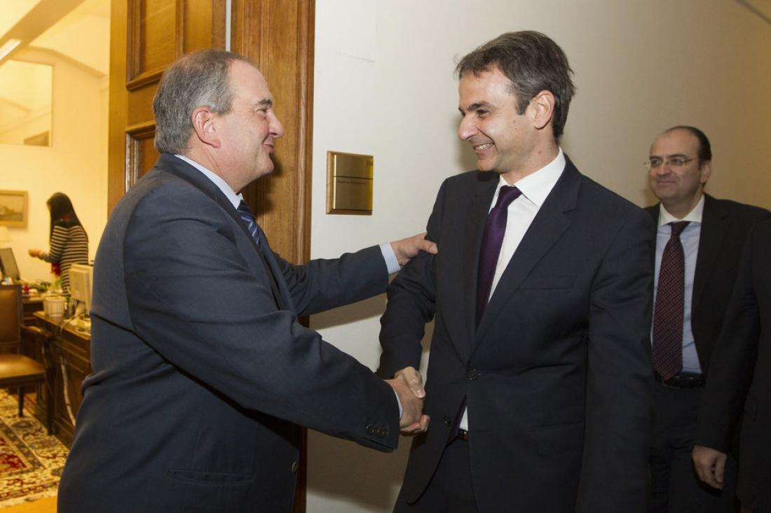 Η συνάντηση πραγματοποιείται στο γραφείο του κ. Μητσοτάκη στη Βουλή και γίνεται στο πλαίσιο των τακτικών επαφών του με τους πρώην αρχηγούς της Νέας Δημοκρατίας.