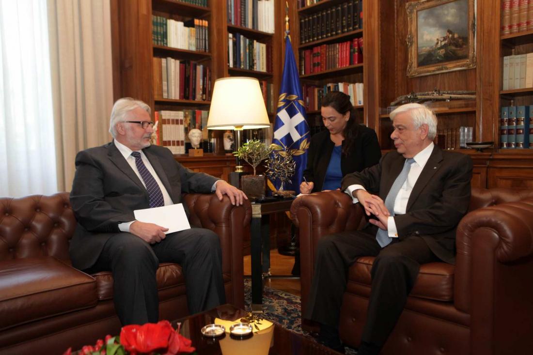 Την ανάγκη η Ευρωπαϊκή Ένωση να ξαναγίνει ελκυστική και συνάμα να ενισχυθεί η εξωτερική πολιτική και η άμυνά της, επισήμανε ο Πρόεδρος της Δημοκρατίας, Προκόπης Παυλόπουλος, κατά την συνάντησή του με τον υπουργό Εξωτερικών της Πολωνίας, Witold Waszczykowski, στο Προεδρικό Μέγαρο.