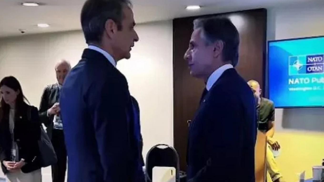 Σύντομη κατ’ ιδίαν συνάντηση πραγματοποιήθηκε μεταξύ του Έλληνα πρωθυπουργού, Κυριάκου Μητσοτάκη και του Αμερικανού υπουργού Εξωτερικών, Άντονι Μπλίνκεν, στο περιθώριο της Συνόδου Κορυφής του ΝΑΤΟ στην Ουάσιγκτον.