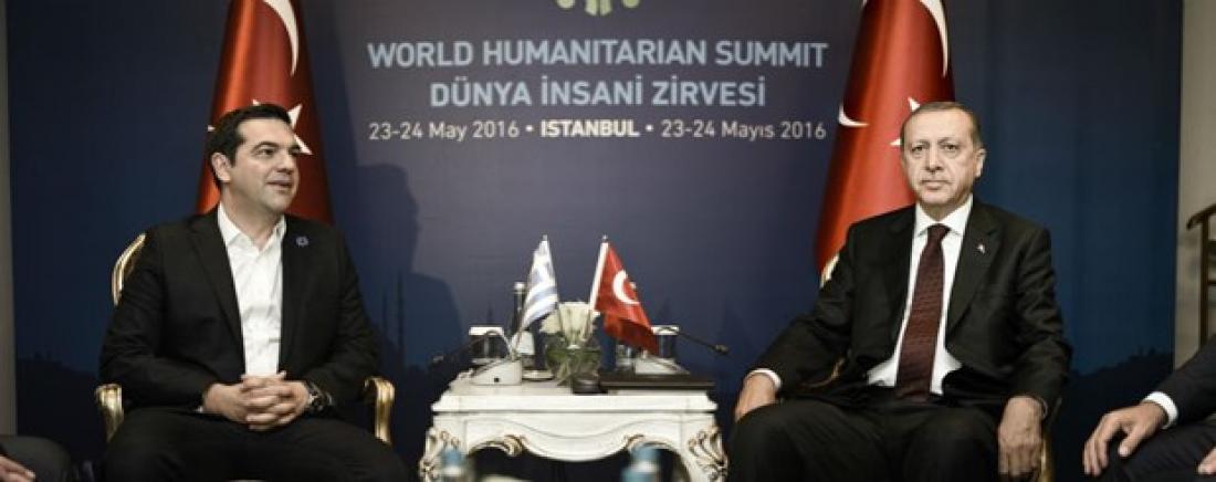 Για τα θέματα της συμφωνίας Ευρωπαϊκής Ένωσης-Τουρκίας που αφορούν τη διαχείριση των προσφυγικών ροών, συζήτησαν σύμφωνα με κυβερνητικές πηγές, Αλέξης Τσίπρας και Ταγίπ Ερντογάν στη μεταξύ τους συνάντηση που διήρκεσε 45 λεπτά.
