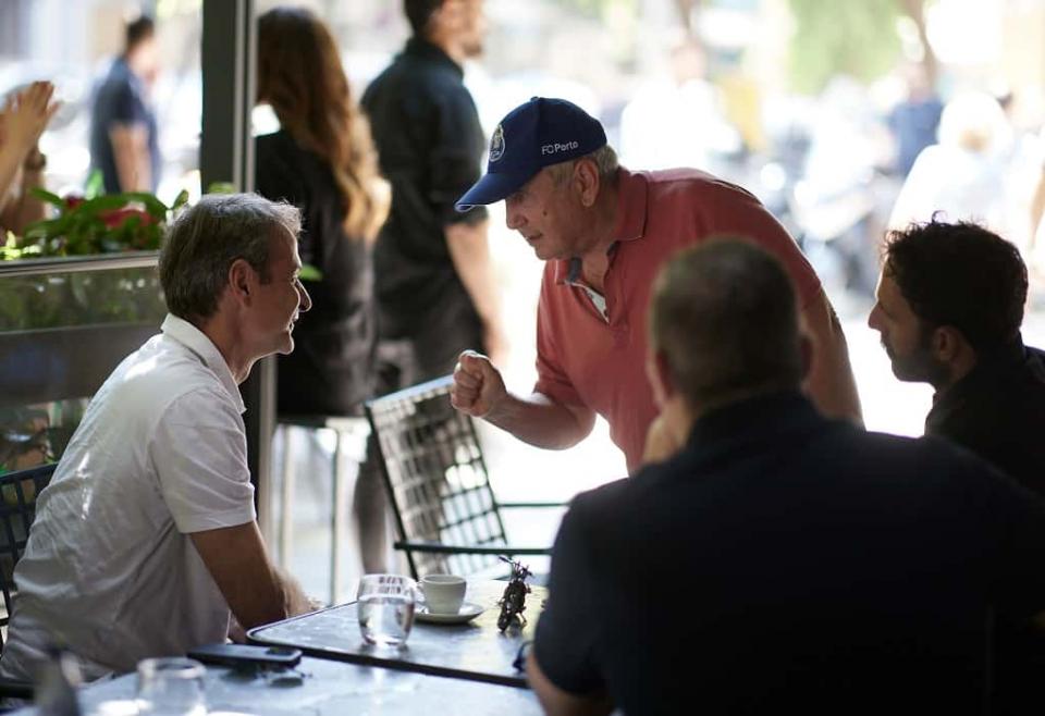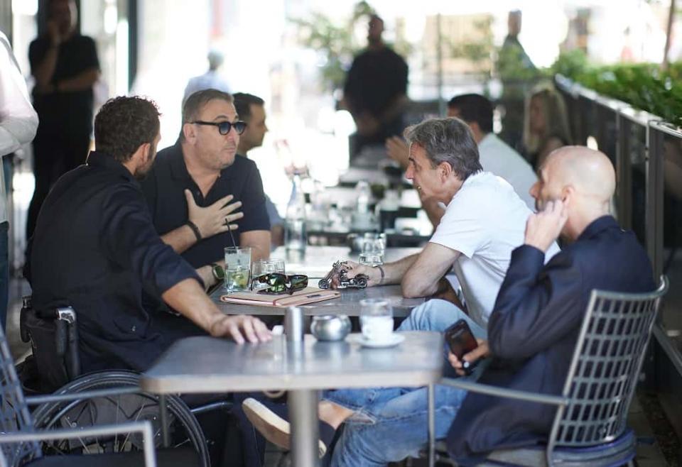 Σε καφετέρια του κέντρου της Θεσσαλονίκης ήπιε καφέ ο Κυρ. Μητσοτάκης με τον στενό συνεργάτη του και μέχρι πρότινος υφυπουργό παρά τω πρωθυπουργώ, Γιάννη Μπρατάκο, τον τραγουδιστή Αντώνη Ρέμο και τον παραολυμπιονίκη στην κολύμβηση Αντώνη Τσαπατάκη.