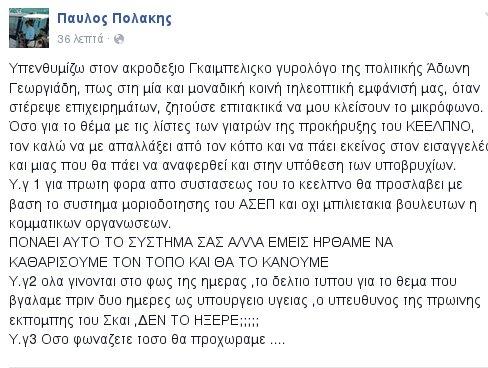 Δείτε την ανάρτηση του κ. Πολάκη στο Facebook: