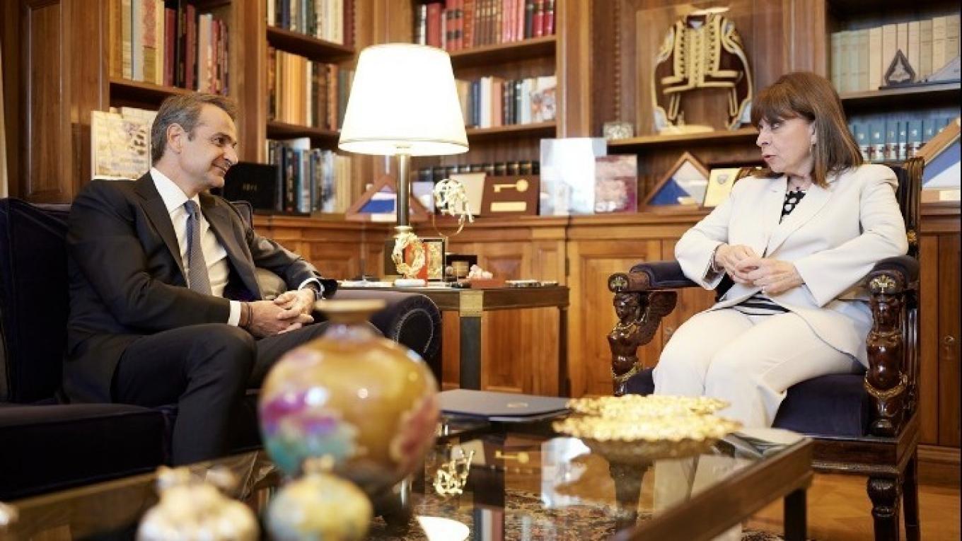 Τον φάκελο της πράξης του υπουργικού συμβουλίου με την οποία ζητείται η διάλυση της Βουλής και η προκήρυξη εκλογών, παρέδωσε προ ολίγου ο πρωθυπουργός Κυριάκος Μητσοτάκης στην Πρόεδρο της Δημοκρατίας Κατερίνα Σακελλαροπούλου.