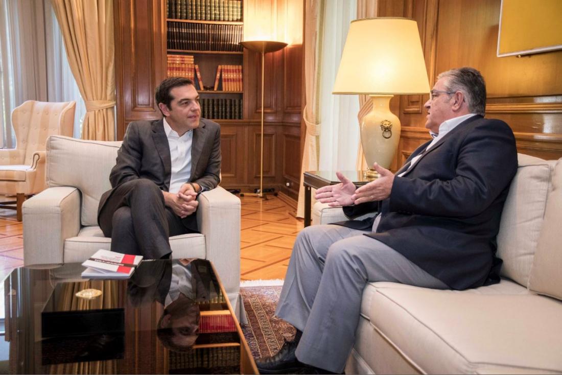 Ολοκληρώθηκε η συνάντηση του πρωθυπουργού με τον γενικό γραμματέα της ΚΕ του ΚΚΕ Δημήτρη Κουτσούμπα στο πλαίσιο των επαφών του Αλέξη Τσίπρα με τους πολιτικούς αρχηγούς προκειμένου να τους ενημερώσει για τα αποτελέσματα του Eurogroup και τις εξελίξεις στο Κυπριακό.