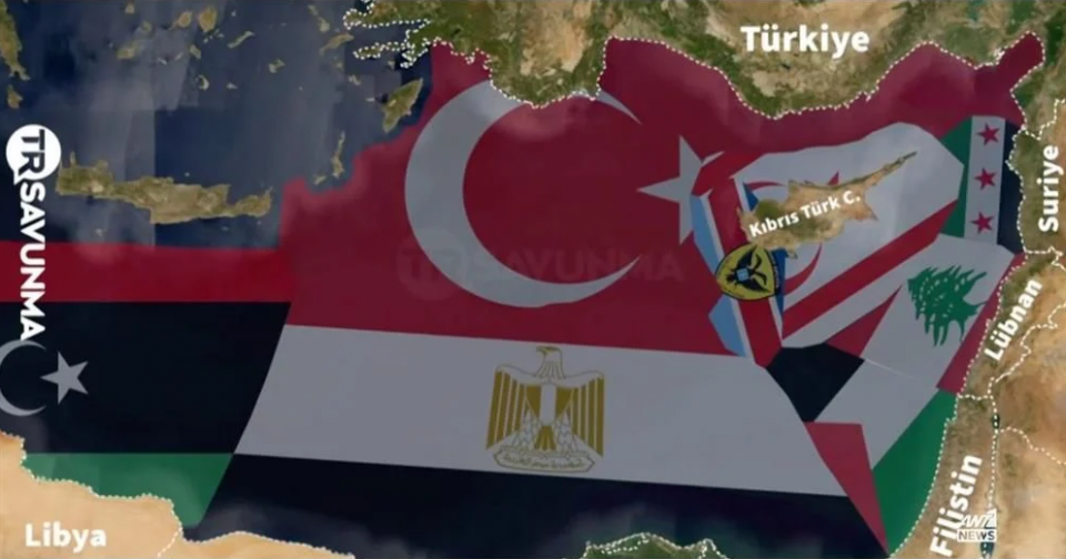 Ήδη στα Μέσα Ενημέρωσης της γείτονος προωθείται ο χάρτης των διεκδικήσεων, ο οποίος επί της ουσίας «καταπίνει» την ελληνική και την κυπριακή ΑΟΖ, σε μια σύμπραξη Τουρκίας, Λιβύης και Συρίας. Συγκεκριμένα, όχι μόνο εξαφανίζεται η ΑΟΖ της Μεγαλονήσου, αλλά φτάνει και 6 μίλια από τις ακτές της Κρήτης. Άρα η Τουρκία είναι σαν να λέει «εγώ Συρία σε στήριξα, πρέπει να αναγνωρίσεις ότι η ΑΟΖ του ψευδοκράτους αναλογεί στα 3/4 του νησιού».