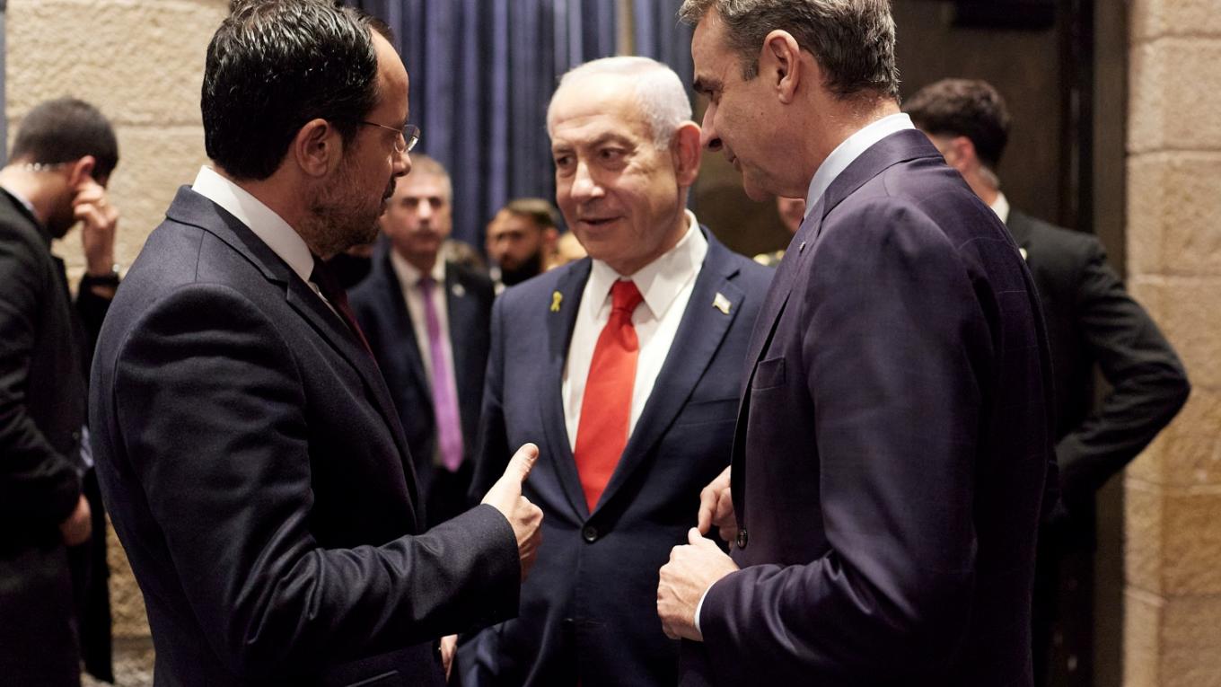 Μήνυμα στρατηγικής συμμαχίας, εμβάθυνσης της συνεργασίας αλλά και αποτροπής εξέπεμψαν οι κοινές δηλώσεις του Έλληνα πρωθυπουργού Κυριάκου Μητσοτάκη, του Ισραηλινού ομολόγου του Μπενιαμίν Νετανιάχου και του Προέδρου της Κυπριακής Δημοκρατίας Νίκου Χριστοδουλίδη, μετά την ολοκλήρωση της τριμερούς Συνόδου Κορυφής Ελλάδας–Κύπρου–Ισραήλ στην Ιερουσαλήμ.
