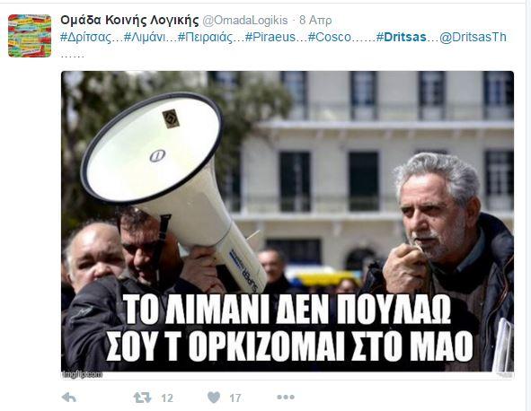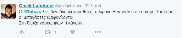 Τα hashtag #dritsas και #Δρίτσας από τα πιο δημοφιλή στο twitter.
