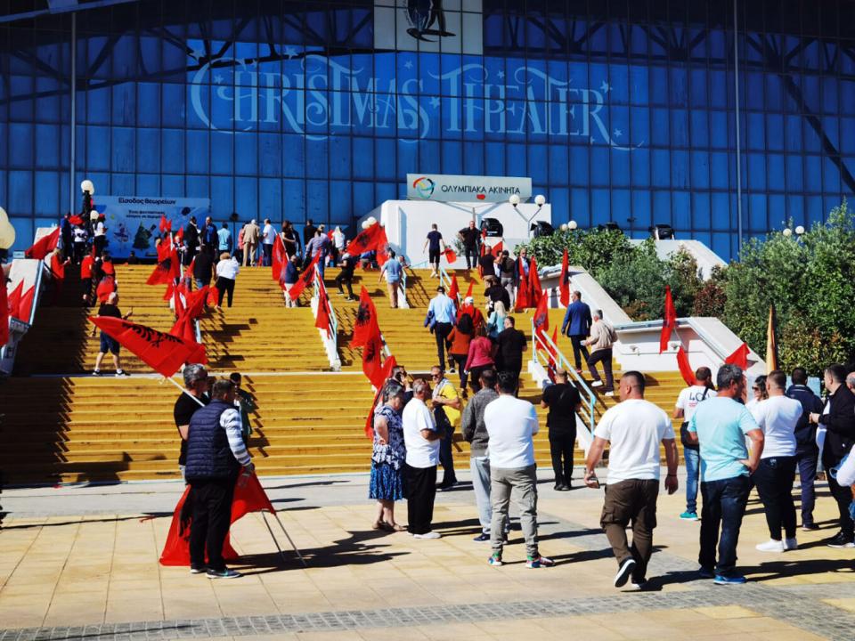Υπό δρακόντεια μέτρα ασφαλείας πραγματοποιείται η συγκέντρωση Αλβανών μεταναστών, μελών και φίλων του κόμματός του Εντι Ράμα στο κλειστό γήπεδο του Γαλατσίου.