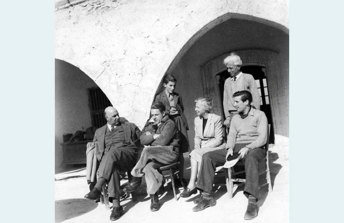 (Στη φωτό: Ο Γιώργος Σεφέρης στη Μονή Αχειροποιήτου στην Κύπρο το 1953, έχοντας δίπλα του τον Λόρενς Ντάρελ. Κοντά τους, η Αντουανέτα Διαμαντή και ο Μορίς Κάρντιφ. Όρθιοι, ο ζωγράφος Α. Διαμαντής και ο γιος του)