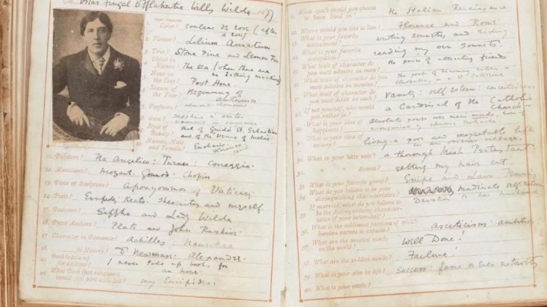 Σε 39 προσωπικές ερωτήσεις απαντά ο 20χρονος φοιτητής τότε στην Οξφόρδη Όσκαρ Ουάιλντ και το ερωτηματολόγιο βγήκε στο σφυρί σε διαδικτυακή δημοπρασία στου Sotheby's.