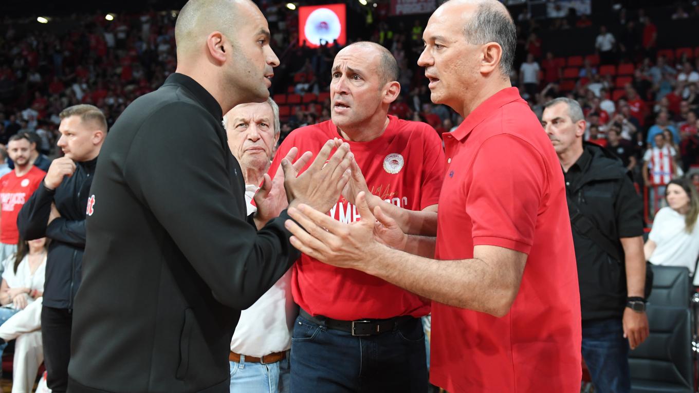 «Να ξεκινήσουμε με τον κύριο Γιαννακόπουλο με τα πραγματικά περιστατικά. Αυτά που έχουν γίνει σήμερα δεν έχουν γίνει στην ιστορία του ελληνικού αθλητισμού. Ξεκίνησε να κάνει κ... δάχτυλα προς εμένα και τον αδερφό μου που καθόμασταν. Τα ξεκίνησε στο Άμπου Ντάμπι προς τον κόσμο του Ολυμπιακού. Του χάρισαν τις ποινές στην Ευρωλίγκα. Αυτός είναι ο Γιαννακόπουλος. Αυτά έκανε. Δεν έχει γίνει τίποτα. Εχει να μη διανοηθούμε να τον χαιρετήσουμε και δεν είχαμε τέτοια πρόθεση.