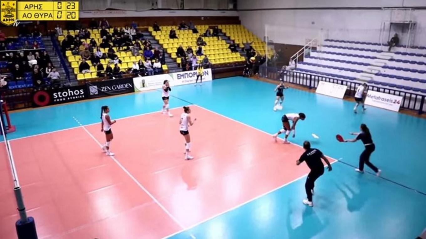 Ένα πρωτοφανές συμβάν, ευτυχώς χωρίς τραυματισμό, συνέβη στον αγώνα μεταξύ Άρη και ΑΟ Θήρας για τη 14η αγωνιστική της Volley League Γυναικών.