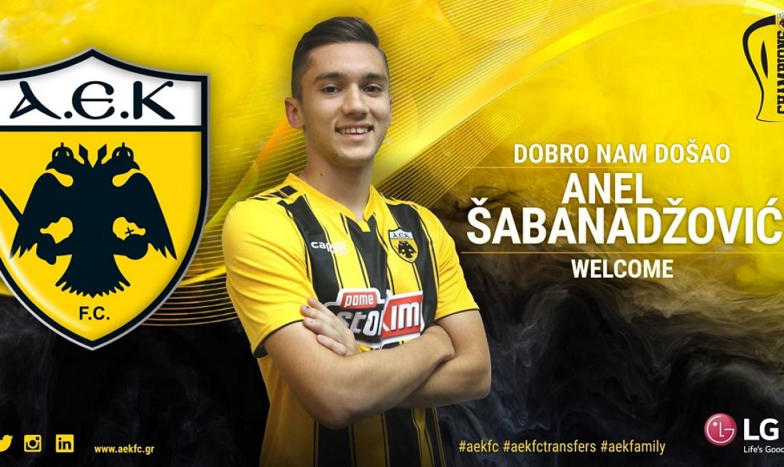 «Η ΠΑΕ ΑΕΚ ανακοινώνει την απόκτηση του Ανέλ Σαμπανάτζοβιτς από την Ζελέζνιτσαρ. Ο Βόσνιος άσος υπέγραψε πενταετές συμβόλαιο συνεργασίας (έως τις 31/12/2023) και θα ενσωματωθεί στην ομάδα μας το προσεχές καλοκαίρι.