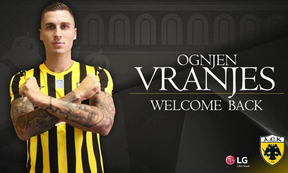 Η επιστροφή του Όγκνιεν Βράνιες στην ΑΕΚ είναι γεγονός! Στους «κιτρινόμαυρους» για τρίτη φορά ο Βόσνιος αμυντικός, ο οποίος πέρασε τα ιατρικά και σφράγισε το δεύτερο come back του στην «Ένωση», αποτελώντας οριστικά παρελθόν από την Άντερλεχτ.