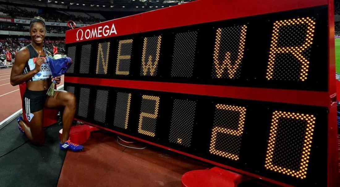 Η Βρετανίδα , με χρόνο 12,20 ”,έσπασε το ρεκόρ της Βουλγάρας Γιορντάνκα Ντόνκοβα , η οποία το 1988 έκανε χρόνο 12,21 ”. "Είναι απίστευτο που πλέον ο κόσμος θα με μνημονεύει ως κάτοχο του παγκόσμιου ρεκόρ" , δήλωσε η Χάρισον μετά την μεγάλη κούρσα. " Ήθελα να δείξω στα κορίτσια (σ.σ. τις αντίπαλες αθλήτριες) τι μπορώ να κάνω. Ακόμα και μετά από ατυχίες πρέπει να συνεχίσεις να προσπαθείς και να δίνεις τον καλύτερό σου εαυτό" , συμπλήρωσε.